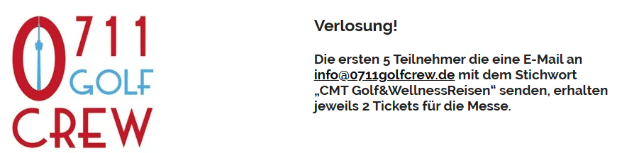 Wie im letzten Jahr präsentiert sich die 0711 GOLF CREW wieder auf der Sonderausstellung Golf- & WellnessReisen im Rahmen der CMT. Traditionell wird sich die 0711 GOLF CREW mit einem 100m²