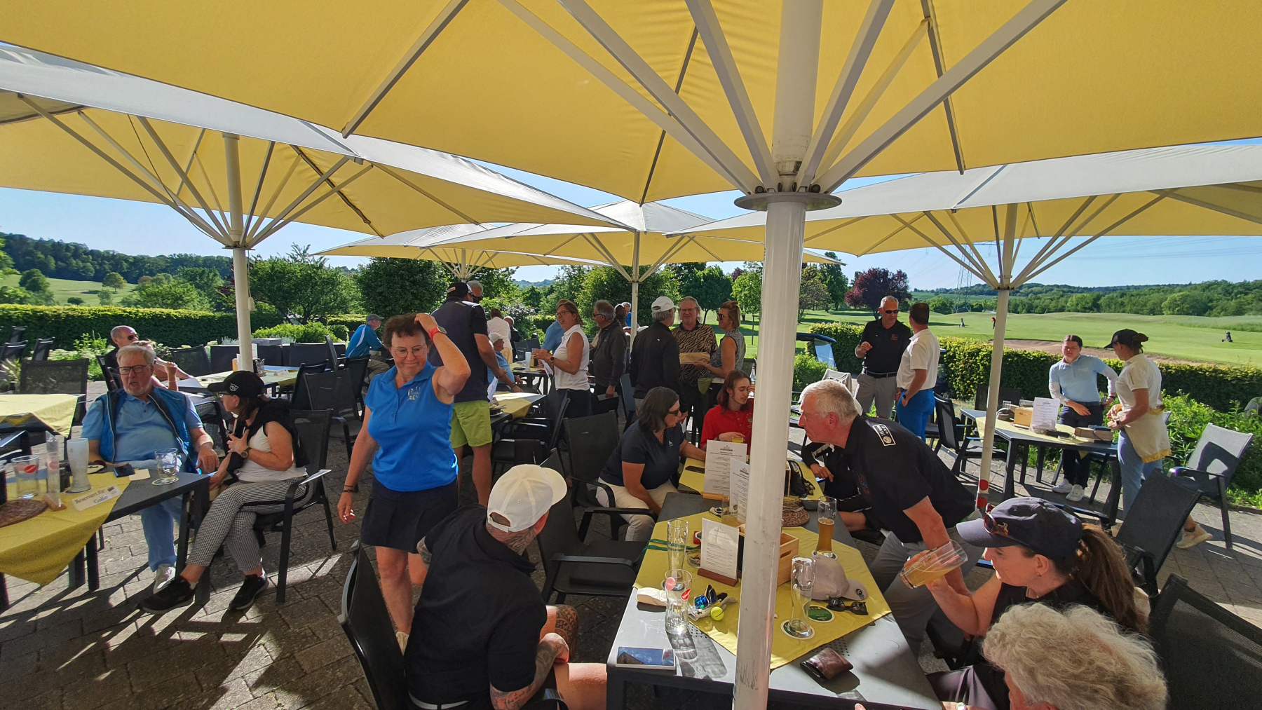 leben, wurde nicht nur mit viel Spaß gegolft, sondern im Anschluss auch gefeiert. Den Verantwortlichen im Club, Stefan und Robert, wurde für die immerzu Beste Zusammenarbeit und Unterstützung gedankt. Dank aller Teilnehmer konnte zur Unterstützung der Golfjugend des GC Sinsheim ein Spenden-Scheck überreicht werden, um die Jugendarbeit voranzutreiben. Das macht uns sehr stolz!